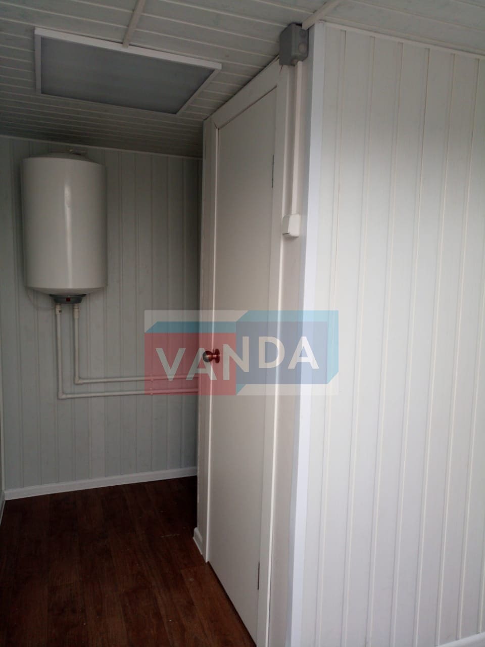 Металлическая бытовка с тамбуром 5,85 x 2,4 - Оргалит ДВП