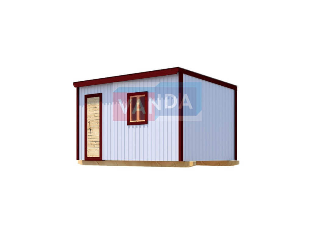 Строительная бытовка без внутренней отделки №2 (вариант 2) изготавливается из качественных материалов: обвязочный венец (сани): брус 100х150 мм., половые лаги: обрезная доска 40х150 мм., через 80 см. (плашмя), черновые полы: обрезная доска 20 мм. (2 сорт), (не сплошной настил, через 10 - 15 см.), чистовой пол покрыт: ДСП строительное 16 мм.. Для изготовления каркаса и перегородок используется: брусок 40х50 мм.. Для стропил используется: обрезная доска 40х150 мм., на кровлю ложится: оцинкованный профлист. Качественная наружная отделка: Профлист. Выполнено утепление полов: Минеральная вата «ISOVER» – 50 мм. и пароизоляция: плёнка техническая. Бытовка комплектуется окнами: деревянное, двустворчатое, одинарное остекление 800х800 мм., входной дверью: деревянная, наборная.