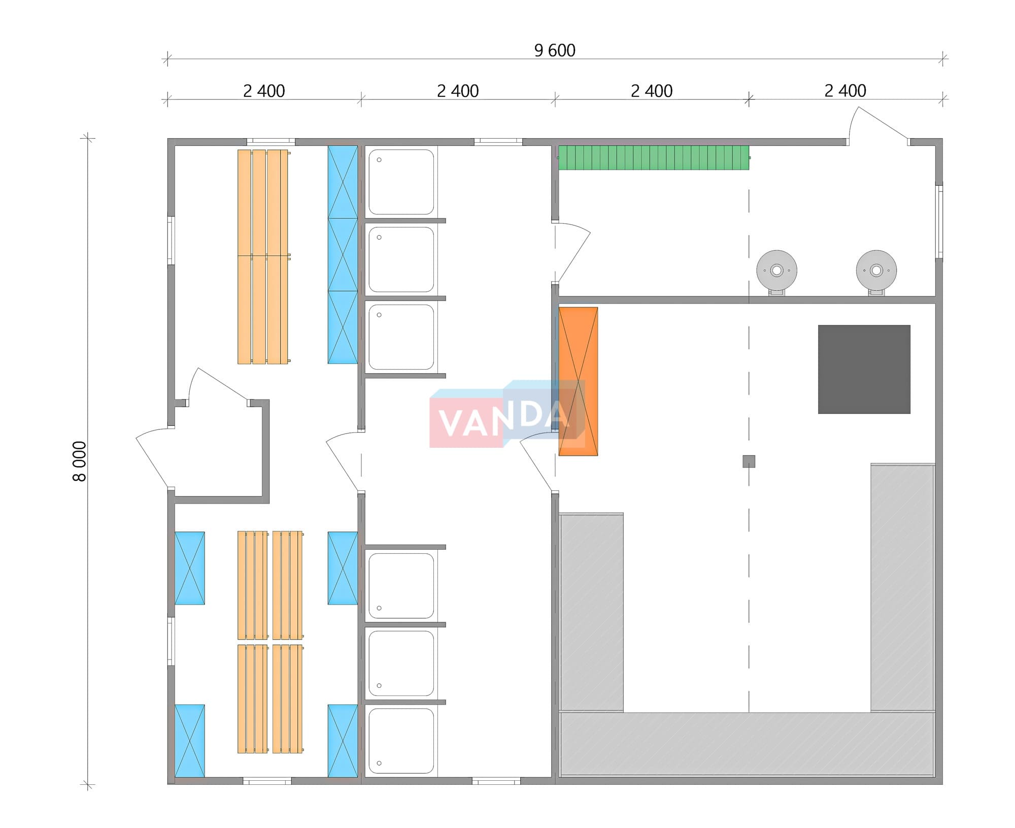 Проект банно-прачечного комплекса 8.0х9.6
