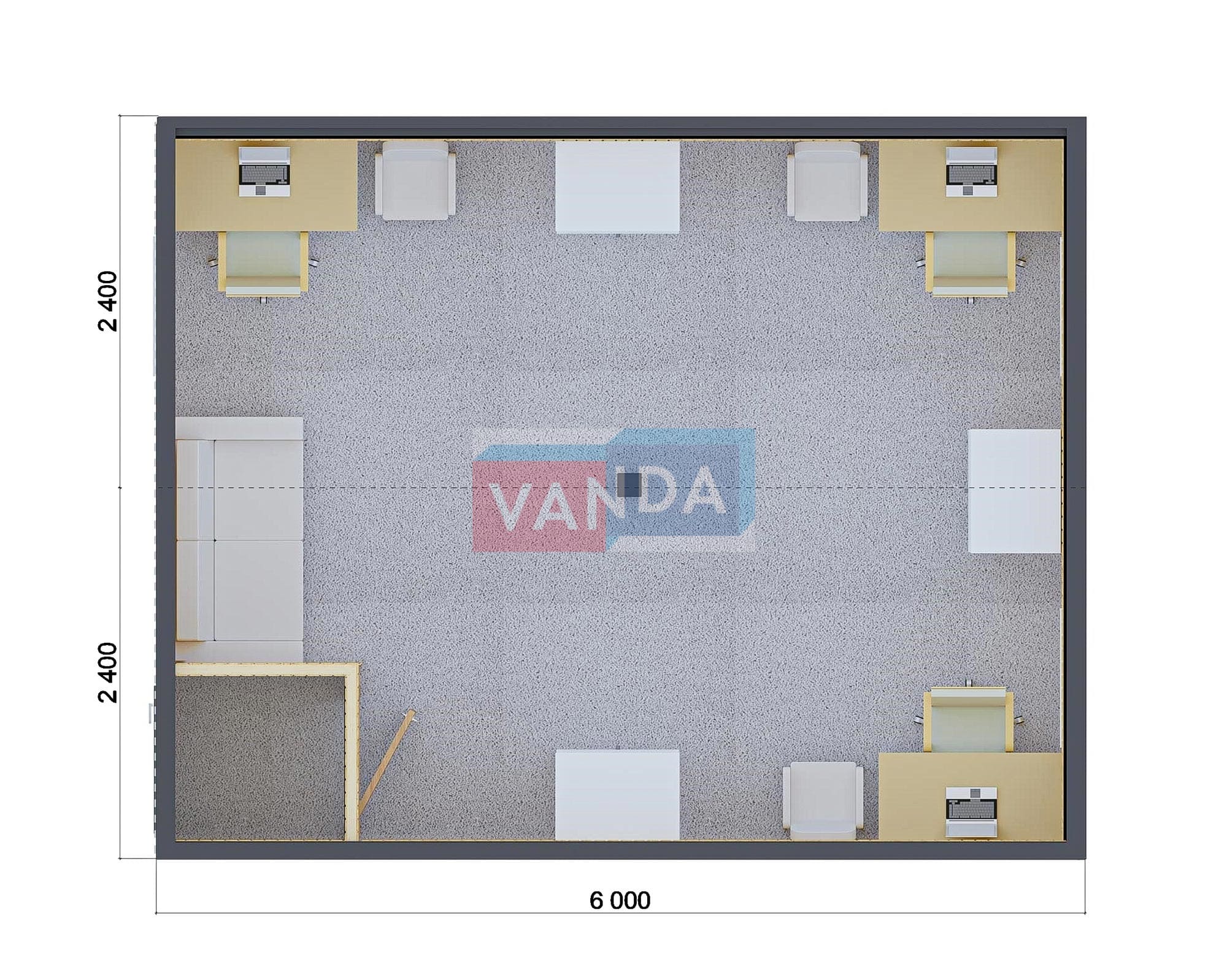 • Габаритные размеры - стандартные размеры одного модульного здания (наружные): Длина: 6 м. Ширина: 2,4 м. Высота: 2,5 м.