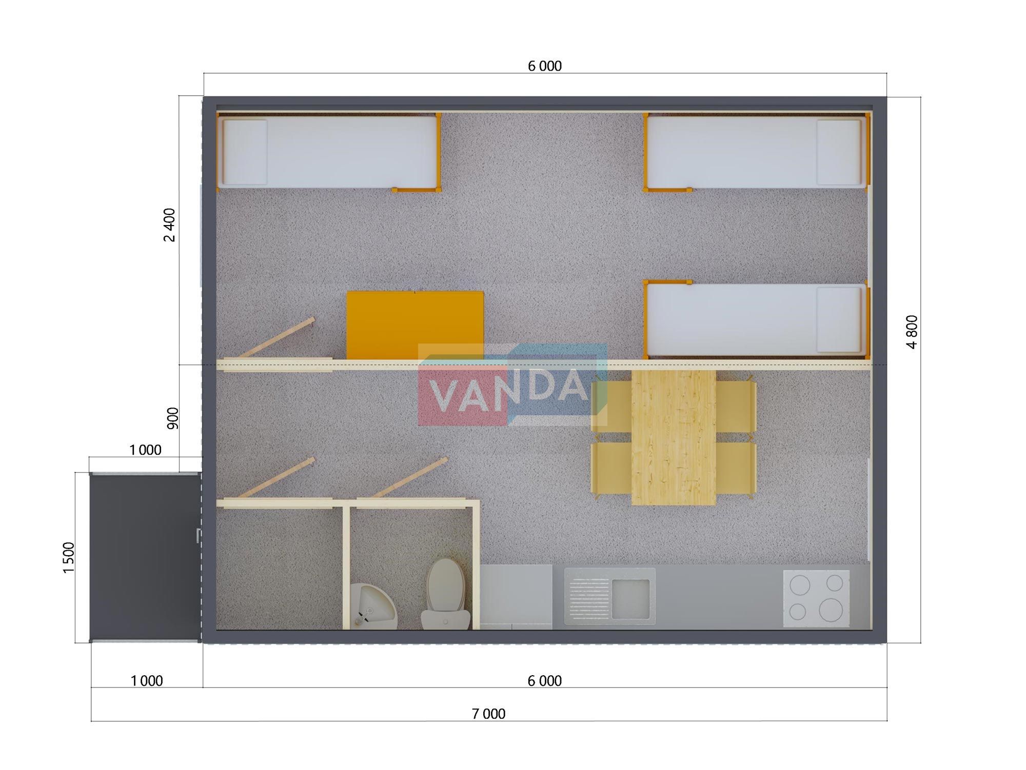 • Габаритные размеры - стандартные размеры одного модульного здания (наружные): Длина: 6 м. Ширина: 2,4 м. Высота: 2,5 м.